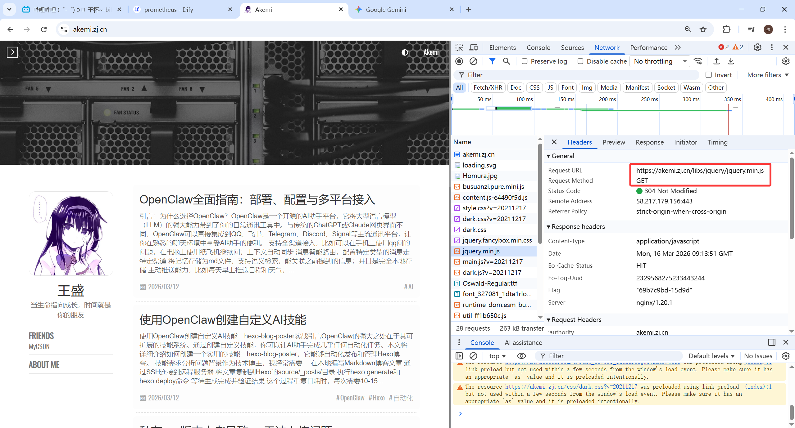 我的博客一直有个问题,开发它的人使用了cdn加载前端组件,如https://cdn.jsdelivr.net/npm,访问博客时会在客户端拉取这些组件